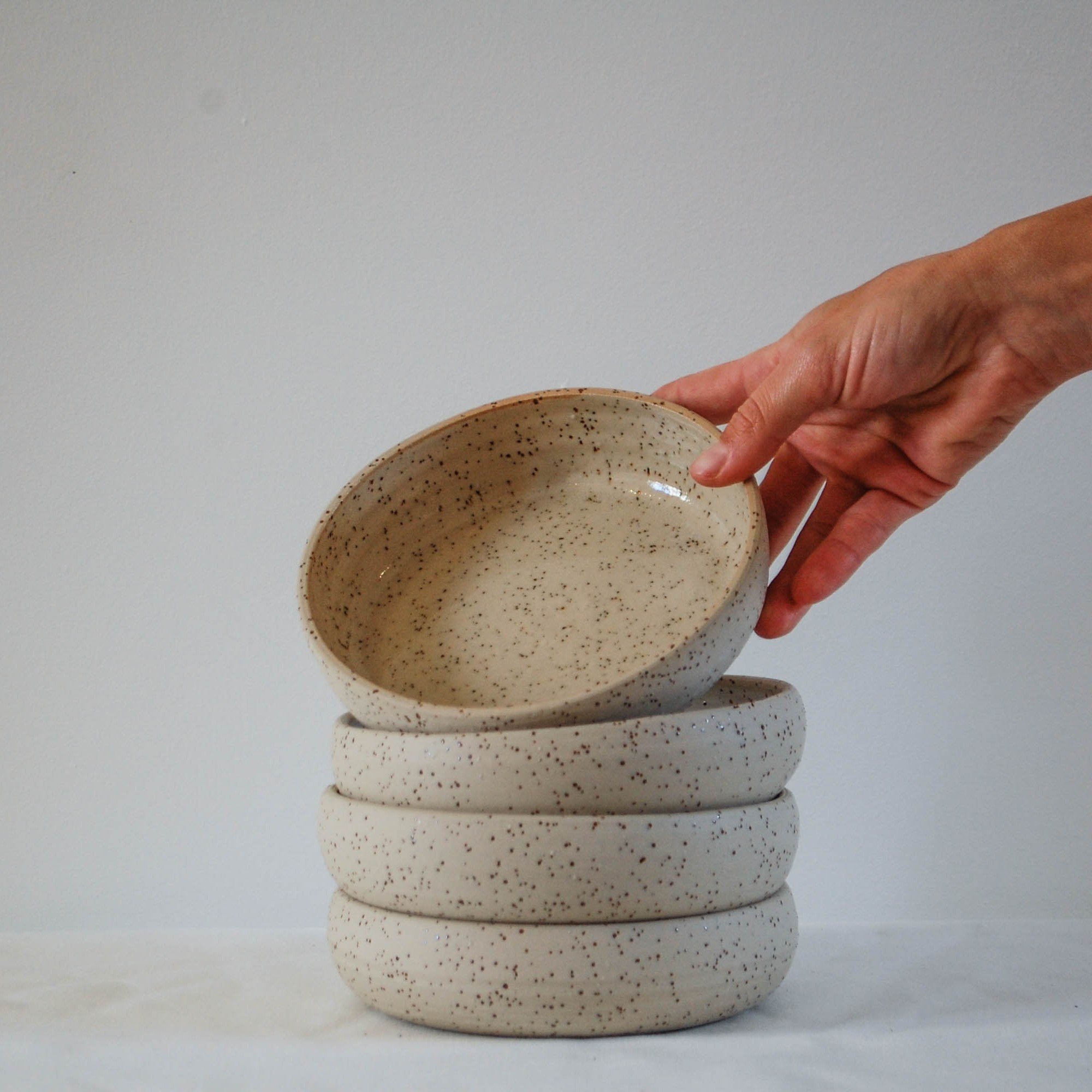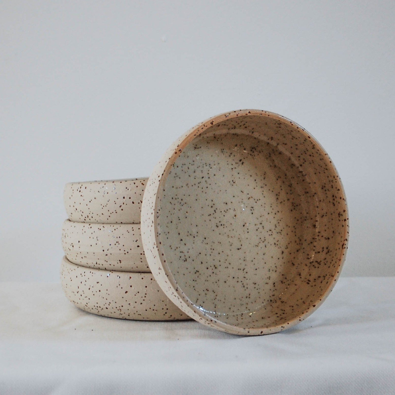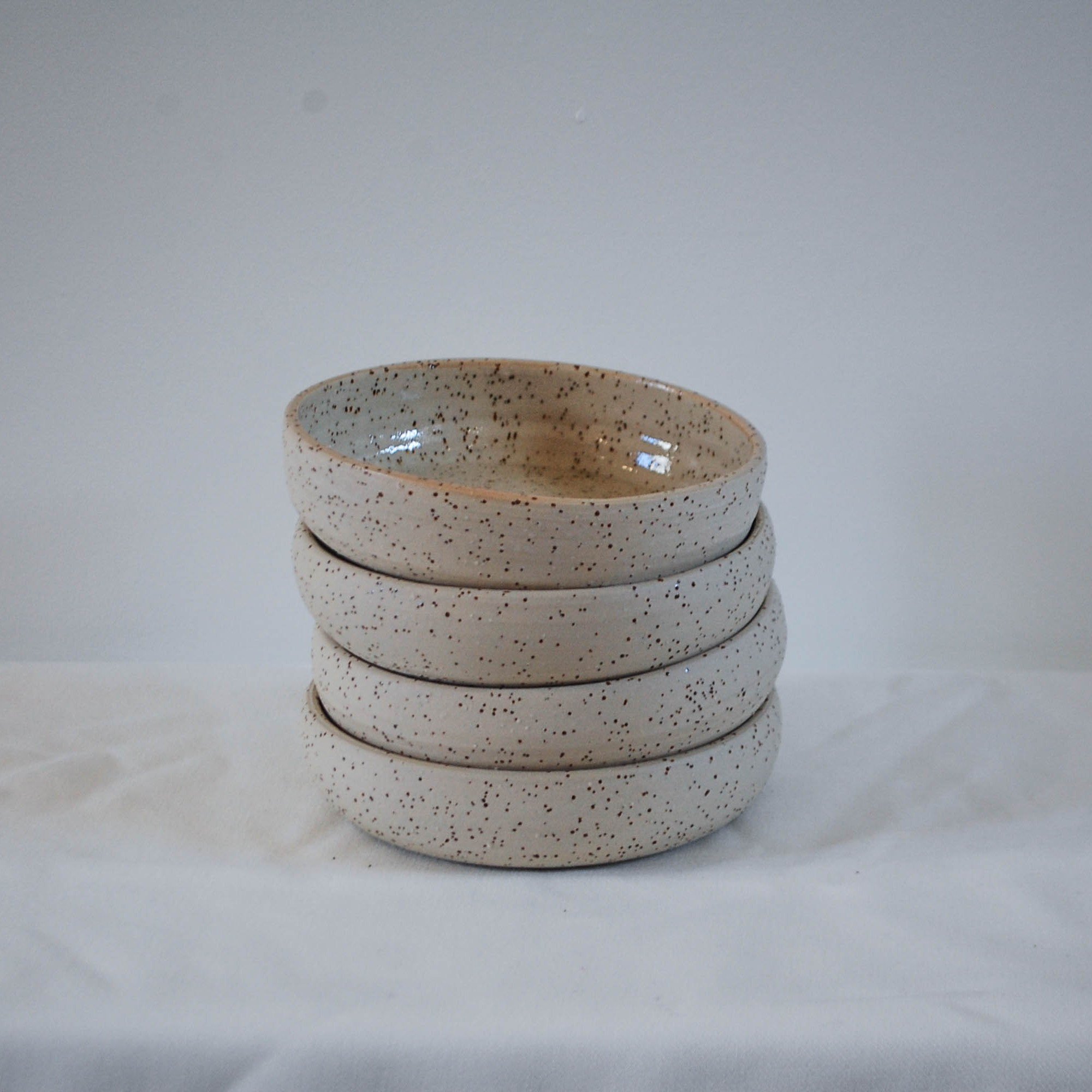 These new pieces feature small black dots, they are iron speckles incorporated inside the stoneware clay.
