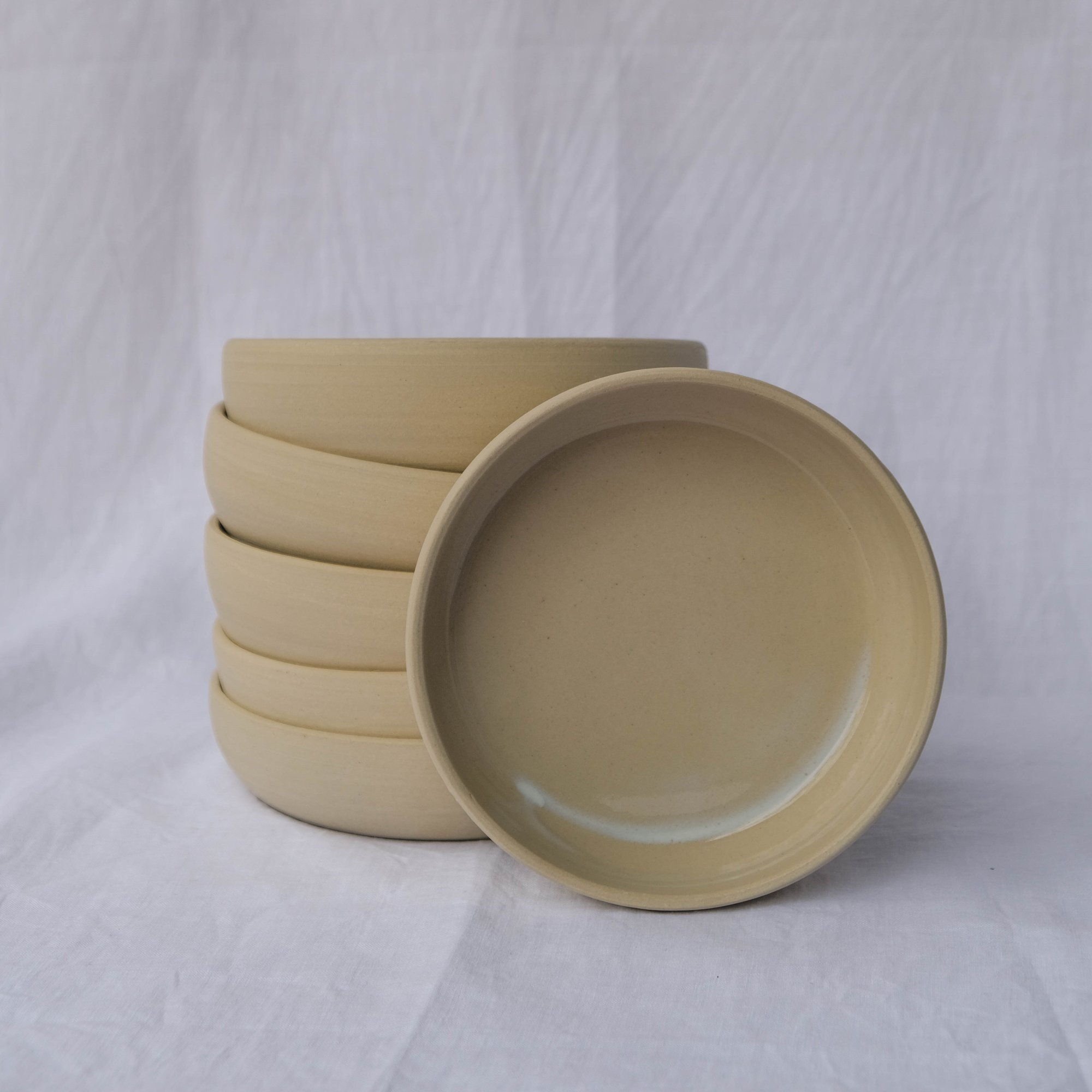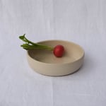 Sturdy and minimalistic, the collection is made of a soft beige stoneware. All plates are glazed inside and not outside, to let the raw clay texture apparent.