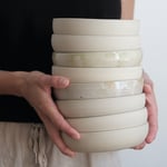 Made on the wheel, all plates combine the regularity of the craft and the uniqueness that comes with a handmade product. Each piece is unique but they can be stacked.