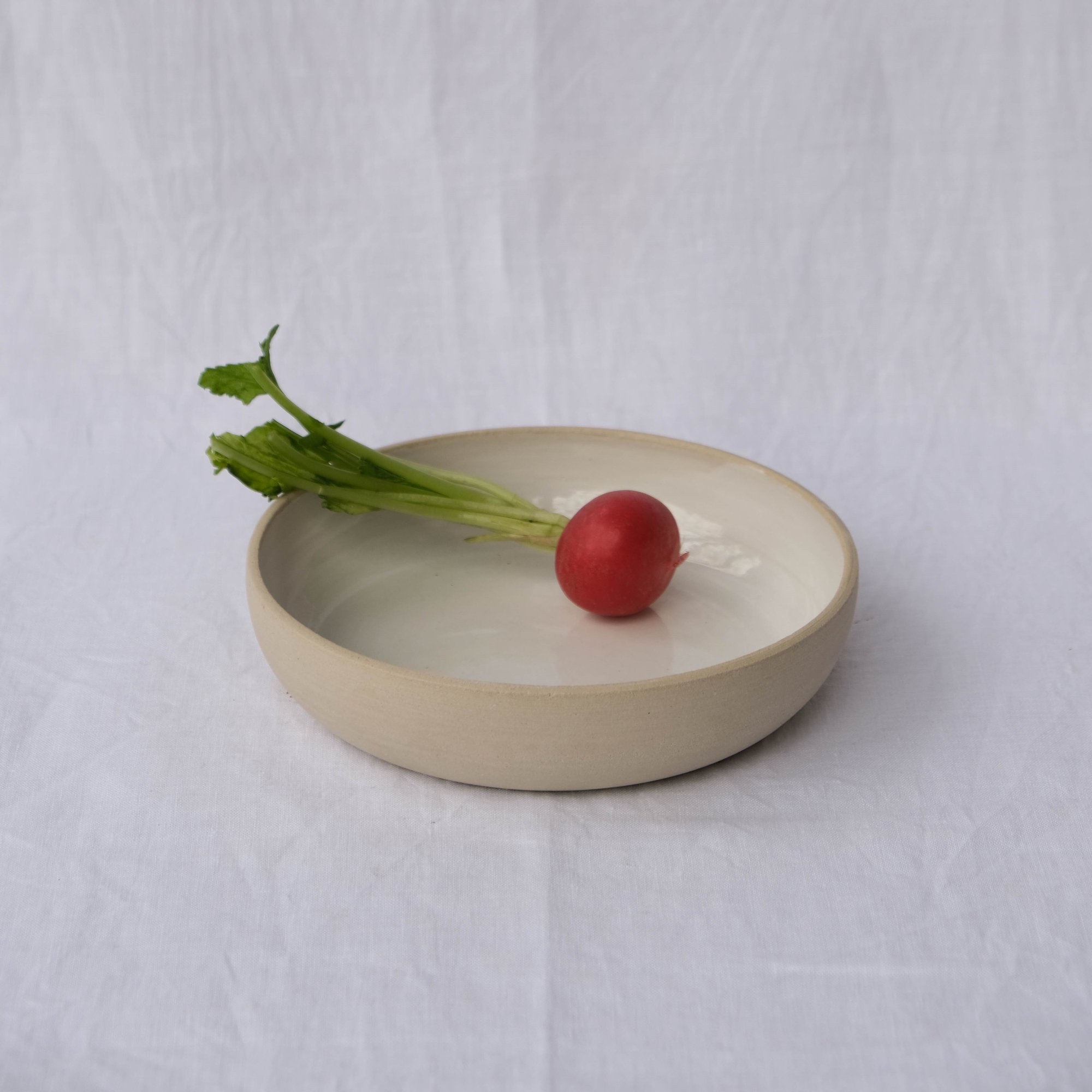 Sturdy and minimalistic, the collection is made of a soft beige stoneware. All plates are glazed inside and not outside, to let the raw clay texture apparent.