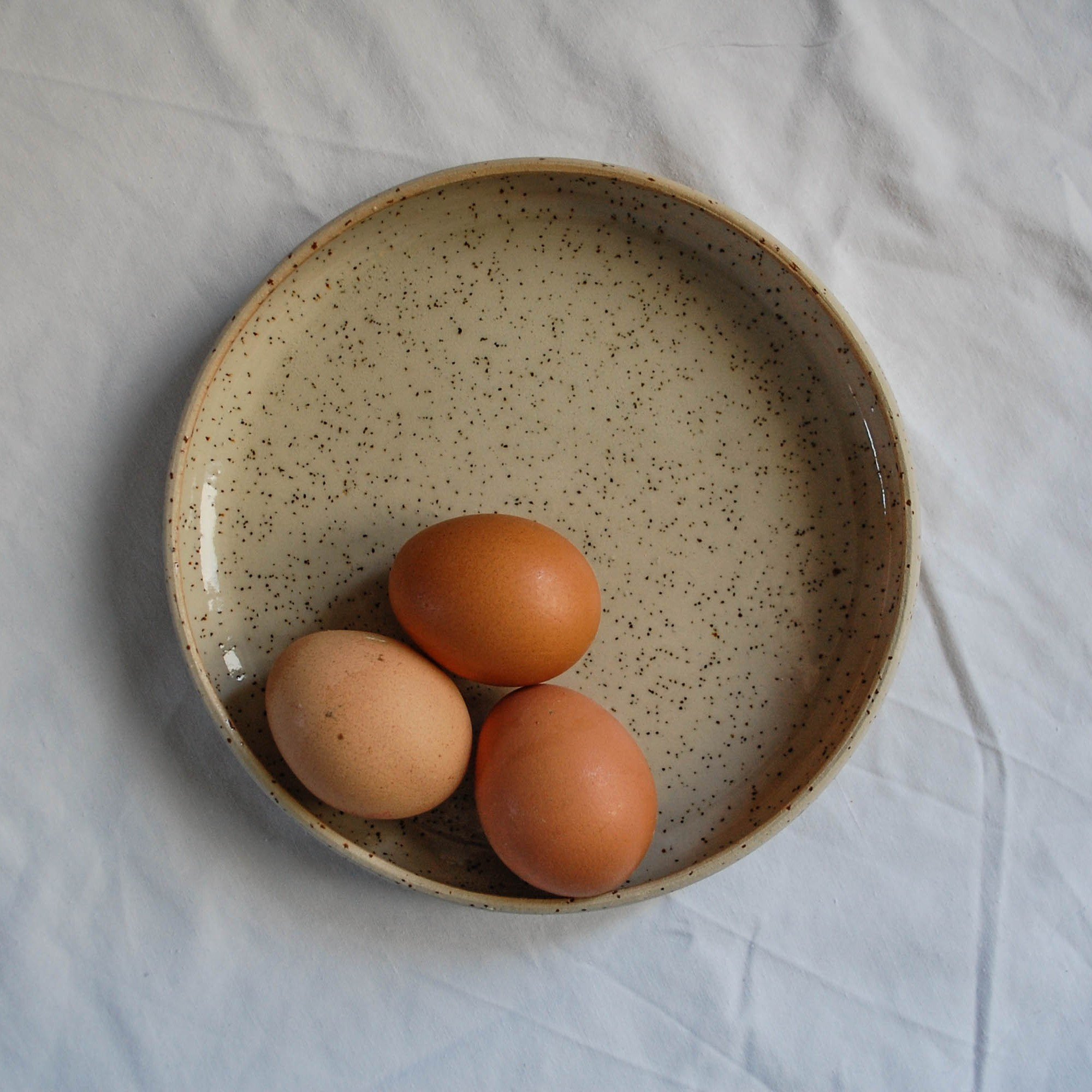 These new pieces feature small black dots, they are iron speckles incorporated inside the stoneware clay.
