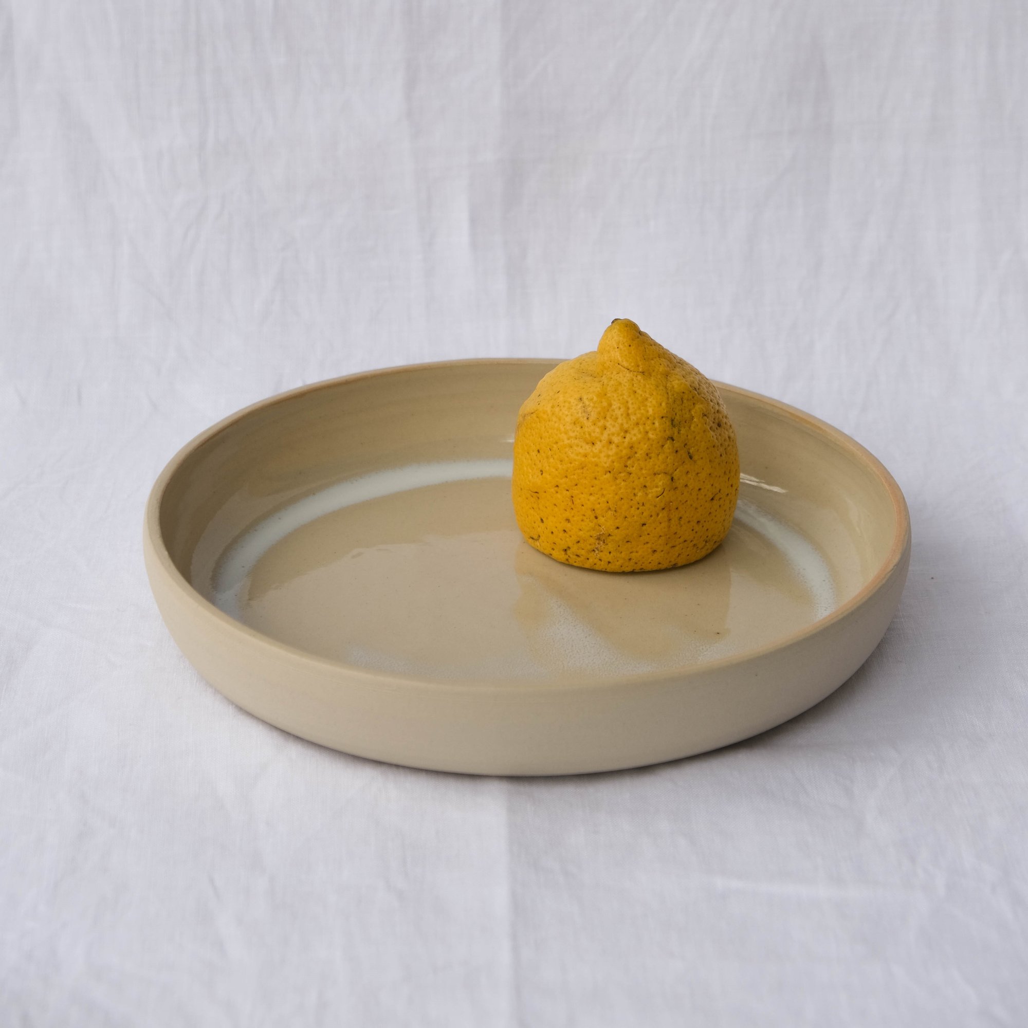 Sturdy and minimalistic, the collection is made of a soft beige stoneware. All plates are glazed inside and not outside, to let the raw clay texture apparent.