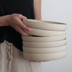 Sturdy and minimalistic, the collection is made of a soft beige stoneware. All plates are glazed inside and not outside, to let the raw clay texture apparent.