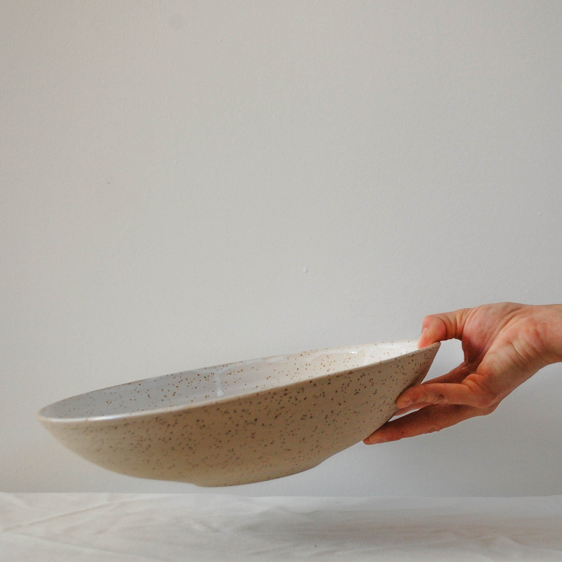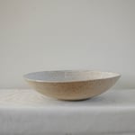 A low serving bowl, unglazed on the outside. Ideal for large salads or as a centerpiece for fruits or decor.