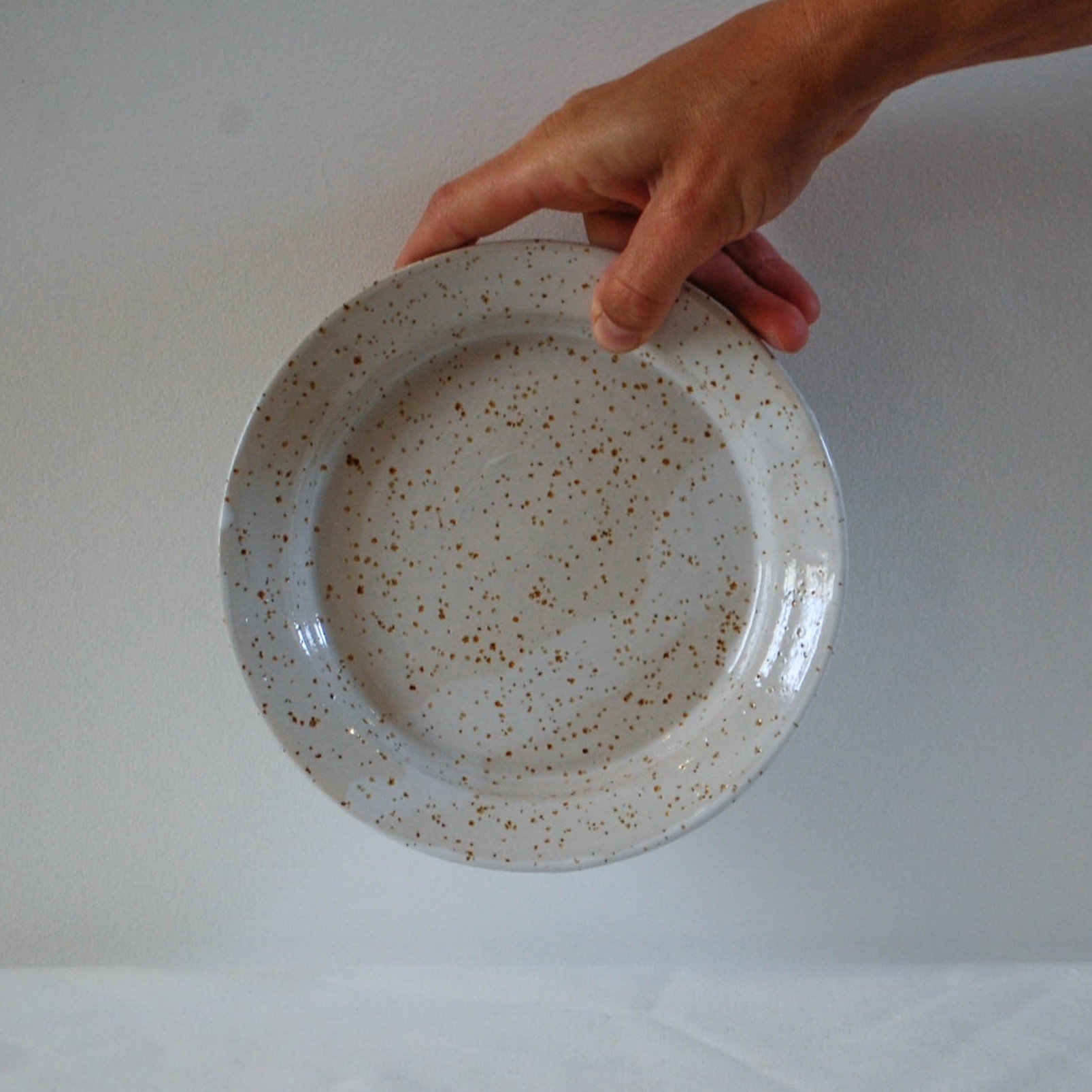 Colour : White glossy glaze on a new iron speckled white stoneware !